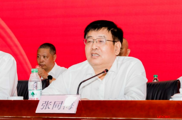 中共山东省委宣传部副部长张同海代表省委宣传部讲话,他充分肯定了山东省印刷协会多年来,特别是第四届理 事会换届以来,在省委、省府坚强领导下,团结广大会员单 位和行业同仁,扛牢印刷大省责任担当,以实际行动“走在 前、挑大梁”,持续推进全省印刷业绿色化、数字化、智能化、融合化发展,在促进印刷业转型升级、加强行业自律、维护会员权益等方面做了大量富有成效的工作。